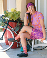 The Artistic Design work that was done on the Happy Hour fabric is tremendous. Every piece is worth the effort to acquire. I especially enjoy the additional zig zag artwork along the rear pockets on the Bellissma jersey and the sheen given to the sunset colors by the fabric content. This is one of my favorite outfits to wear, especially on a sunset or happy hour ride.